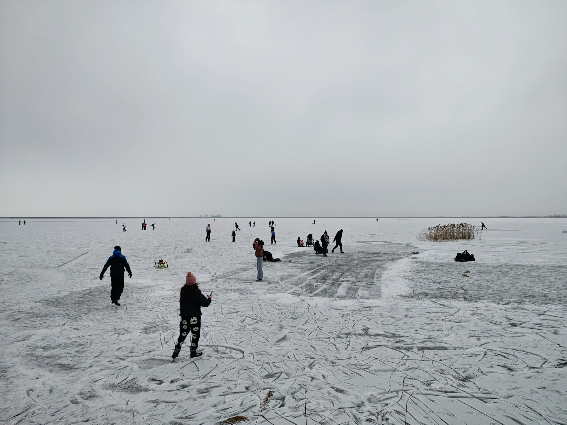A Fertő tó több év kihagyás után szinte teljesen befagyott, sok strandon lehet korcsolyázni, de csak saját felelősségre. Nyílt vízfelületeket bárhol találni, ezért nagyon bemenni nem érdemes. Szombaton ellátogattunk három partszakaszra is, mindegyik helyen más körülményeket találtunk. Egyvalami mindenhol azonos: a jégfelületet hó takarja.