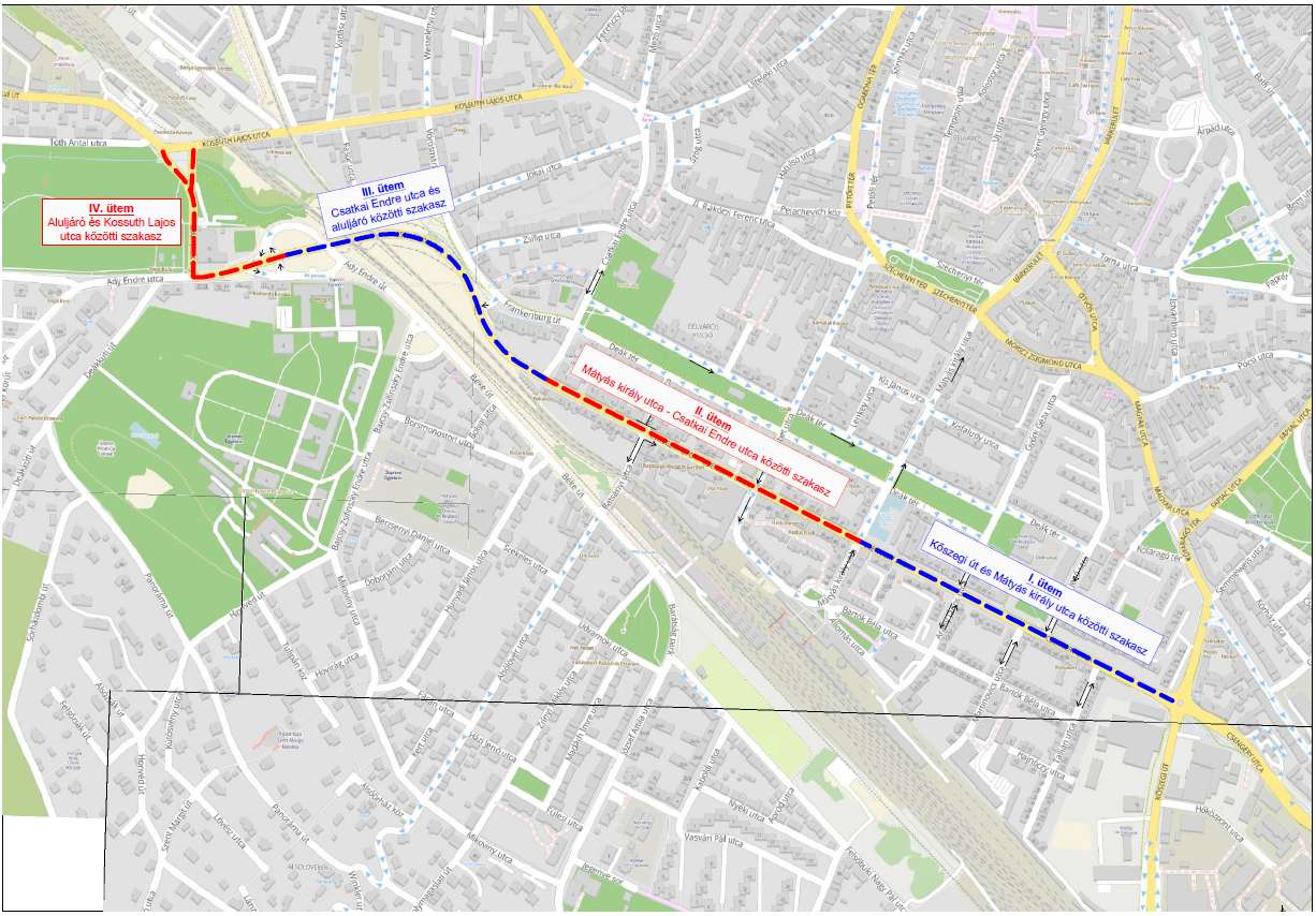 I. ütem: Kőszegi út és Mátyás király utca közötti szakasz