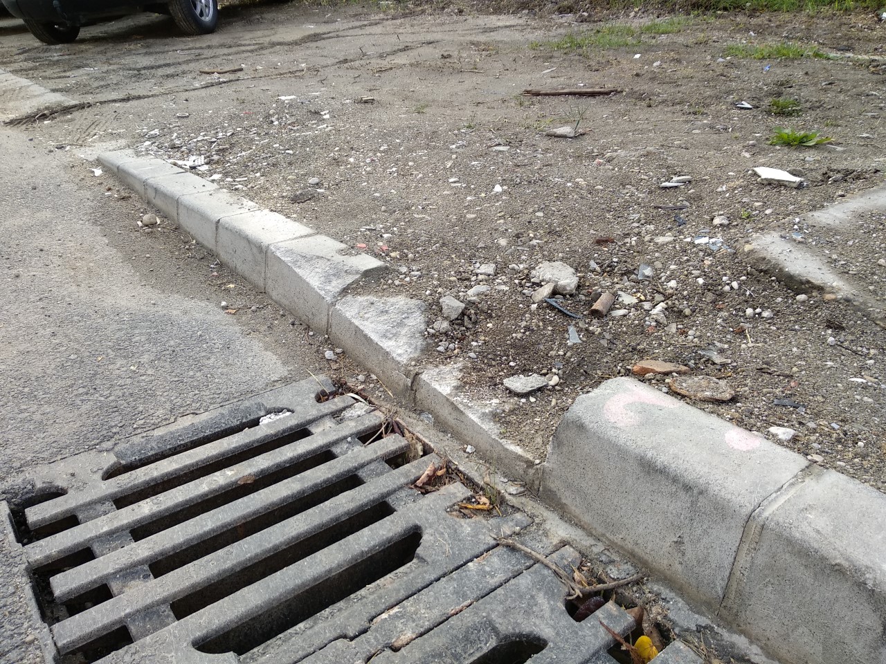 És ez maradt a lomtalanítás után több, mint egy hónappal… Üvegszilánkok mindenütt, ráadásul sikerült a pár héttel korábban lerakott új szegélyköveket is tönkretenni…