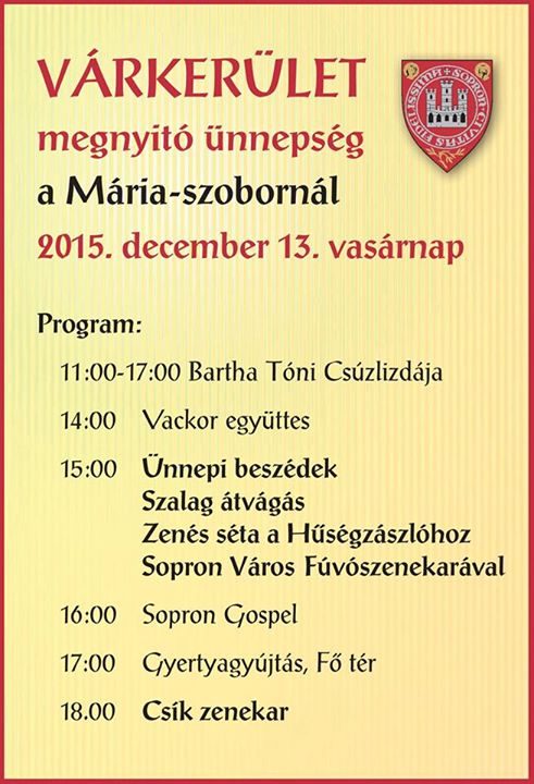Szinte alig hiszem el, de ez az alkalom is elérkezett, a Várkerület-felújítás I. ütemének befejezése alkalmából ünnepséget tartanak egy nappal a Hűség napja előtt, azaz December 13-án Vasárnap. Koncertek, séta, meg minden egyéb lesz, de beszéljen helyettem az alábbi plakát: